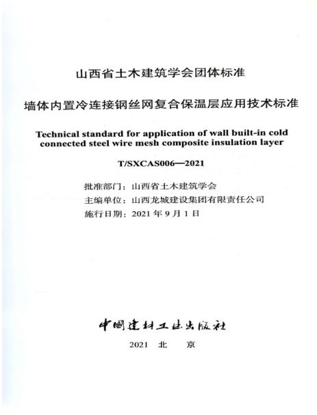 山西龍城建設集團主編的山西省土木建筑學會團體標準《墻體內(nèi)置冷連接鋼絲網(wǎng)復合保溫層應用技術(shù)標準》T/SXCAS006-2021,已于2021年8月17日發(fā)布,2021年9月1日正式實施。